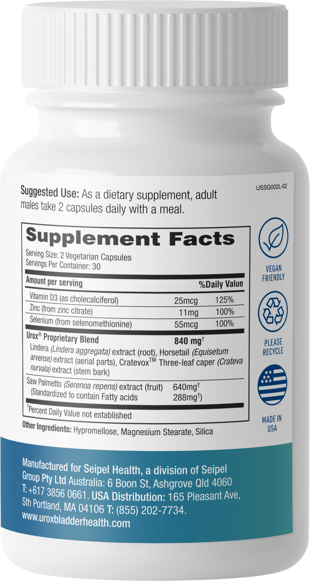 Prorox ® incorporates Urox® for bladder control, combined with clinically proven prostate supportive herbs and nutrients, making it a unique and especially potent formula. Prorox ® has been developed to effectively help relieve the symptoms of medically diagnosed Benign Prostate Hypertrophy and milder forms of bladder weakness. Pilot clinical research has shown the effectiveness of Prorox ® in relieving the symptoms outlined above and in maintaining normal male physiological function.